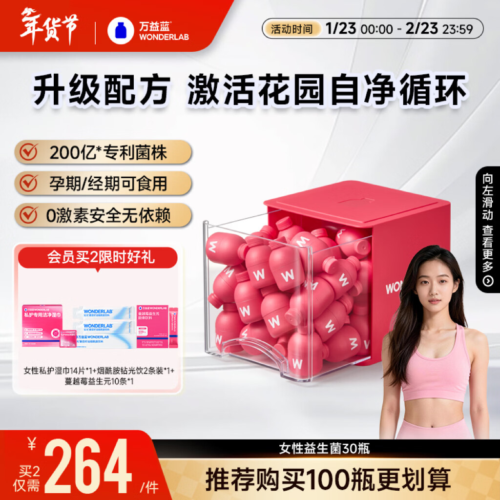 万益蓝WonderLab 蔓越莓女性益生菌30瓶 炎科孕妇理症调益生菌粉