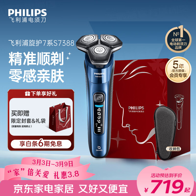 飞利浦电动剃须刀旋护7系 SkinIQ高端系列护肤级刮胡刀 生日礼物送男生男友老公父亲