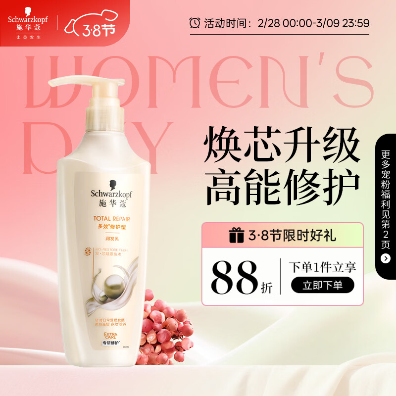 施华蔻(Schwarzkopf)多效修护型润发乳600ml 改善毛躁分叉 柔顺滋养护发素 新老包装