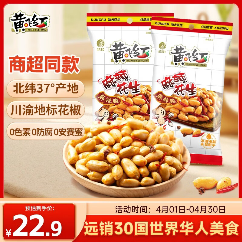 黄飞红(HUANGFEIHONG)麻辣花生210g*2包装 坚果炒货休闲零食小吃下酒菜脱油花生米年货