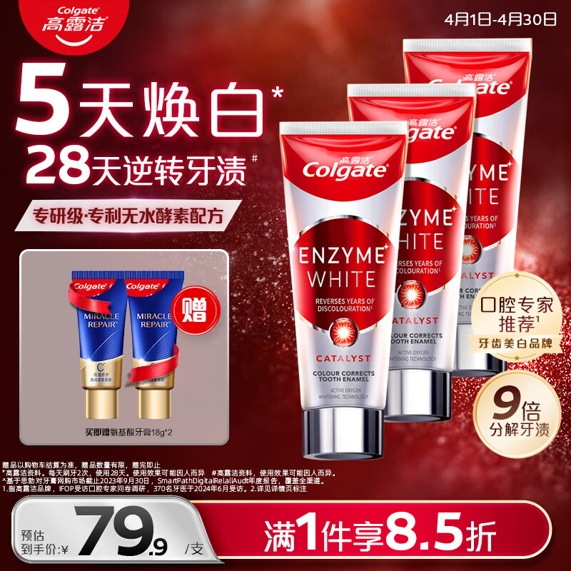 高露洁(Colgate)无水红管酵素美白牙膏101g*3活性酵素去黄去渍去口臭清新口气亮白