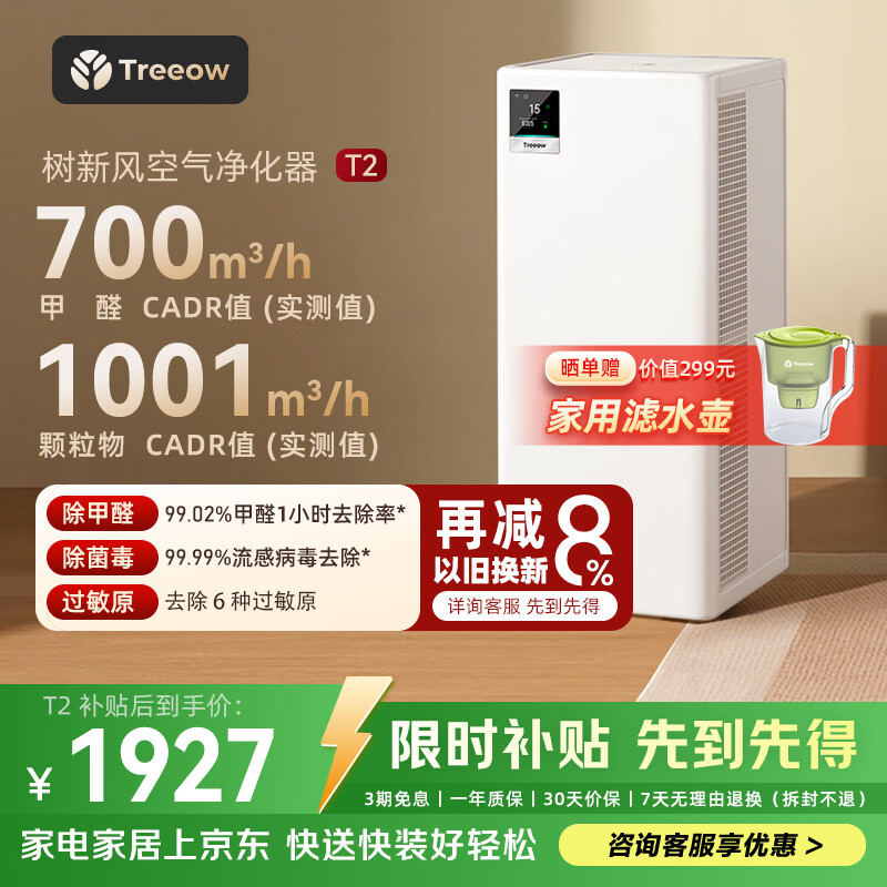 树新风空气净化器 除甲醛异味除菌除花粉过敏认证家用大空间全效净化器T2