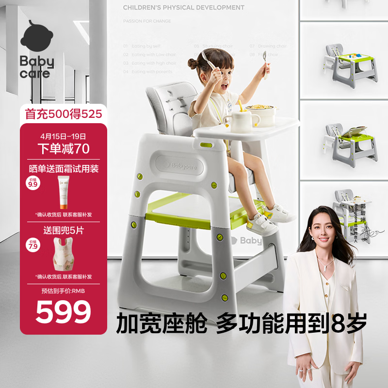 babycare宝宝百变餐椅多功能婴儿餐椅安全防摔儿童吃饭座椅6个月+ 季风灰