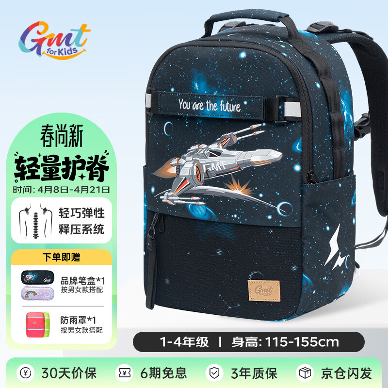 Gmt for kids书包小学生儿童背包护脊减负双肩包礼物1-4年级男战机可折叠底板
