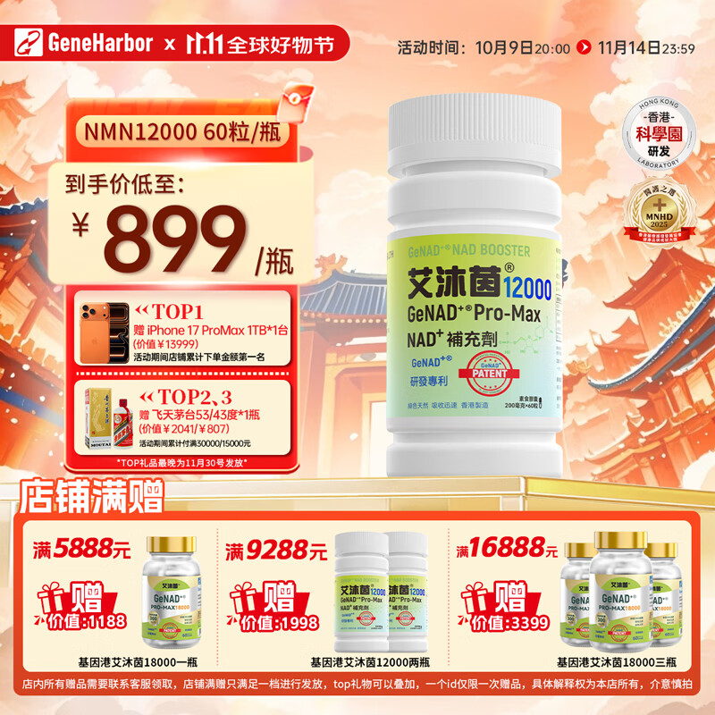 GeneHarbor【花少同款】基因港艾沐茵NMN12000烟酰胺男女款NAD+60粒装1瓶