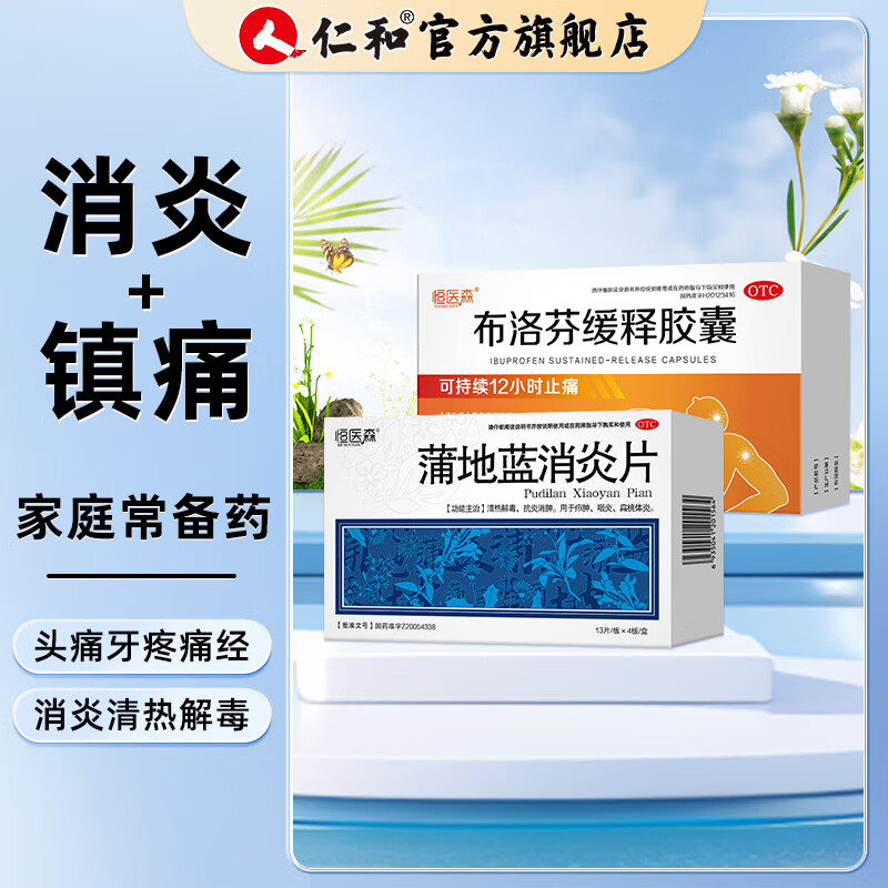 蒲地蓝消炎片 52片/盒 清热解毒下火 消炎去肿 感冒药用于喉咙肿痛 咽炎 扁桃体炎 疖肿 布洛芬胶囊*1盒+蒲地蓝消炎片*1盒【镇痛消炎】