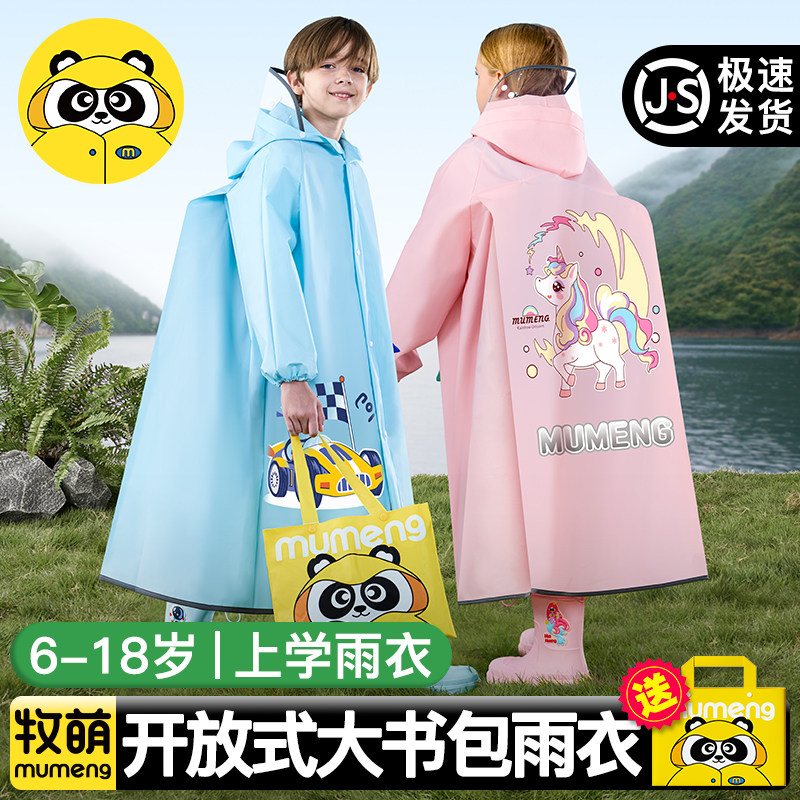 牧萌儿童雨衣男童女孩全身防水幼儿园小学生上学专用带书包位雨披