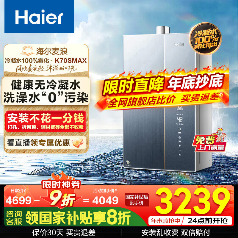 海尔热水器旗舰店手机扫码,领券购买