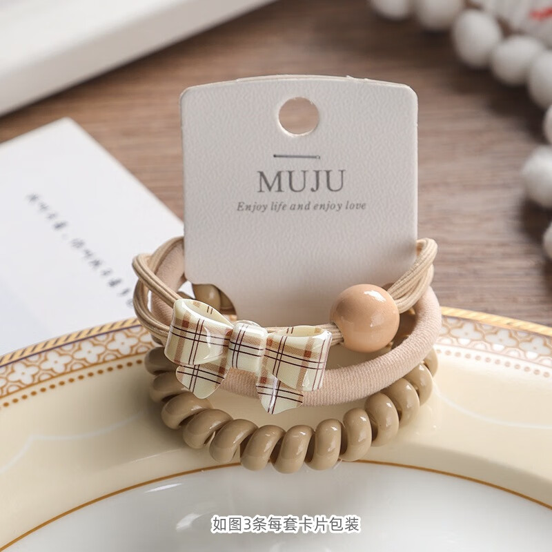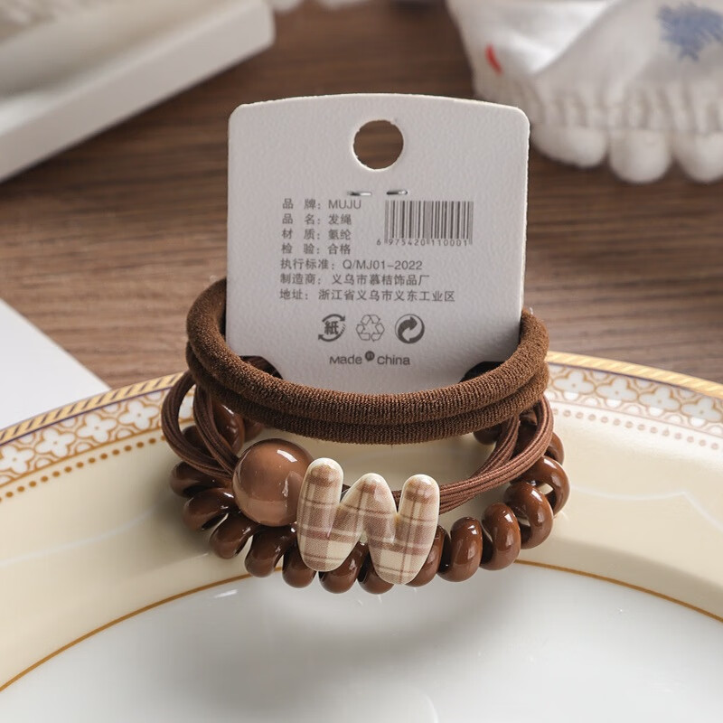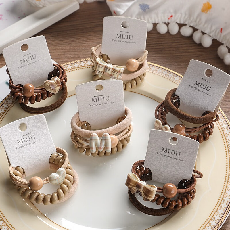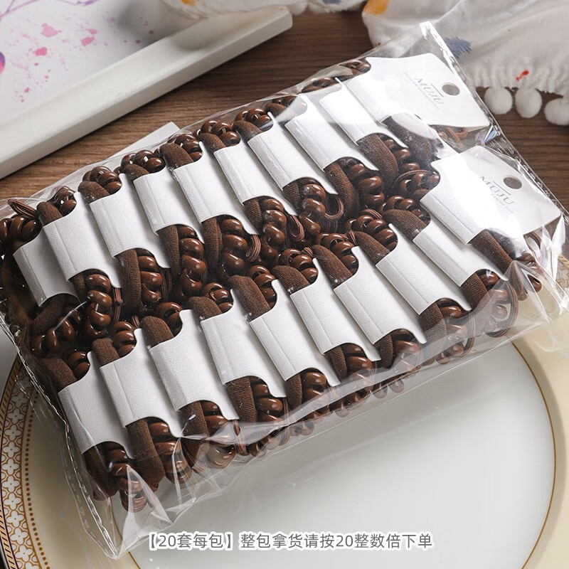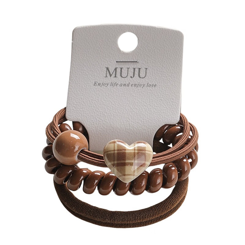 YANIS 33条卡装发圈简约咖色无痕头绳高弹力无接缝毛巾圈皮筋高马尾发绳 3#爱心深咖(3条卡装)