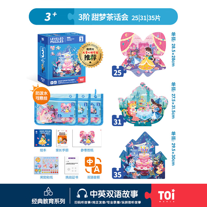 TOI拼图3-6岁益智玩具儿童拼图6-12岁宝宝进阶拼图男女孩生日礼物 彩虹款-3阶甜梦茶话会(3岁+|3袋