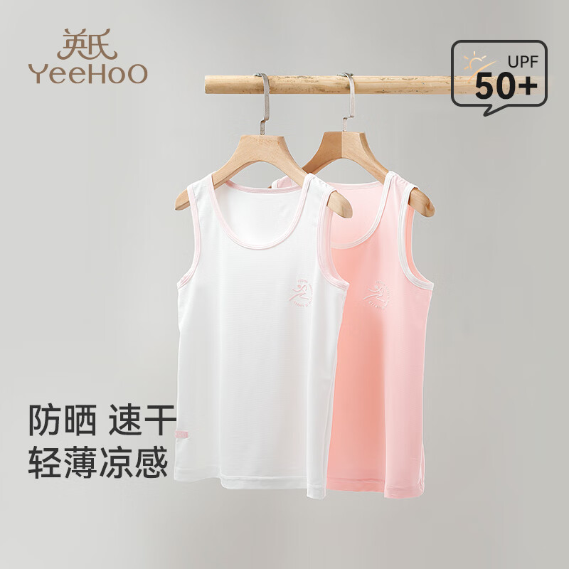 英氏儿童背心【速干防晒凉感】夏季薄款男女童A类内外穿无袖打底 女童白色【一件装】 140