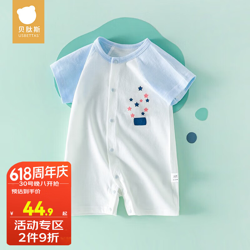 贝肽斯婴儿衣服夏季薄款连体衣新生儿短袖舒凉透气空调房亲肤面料精选 蓝色-星星 80码