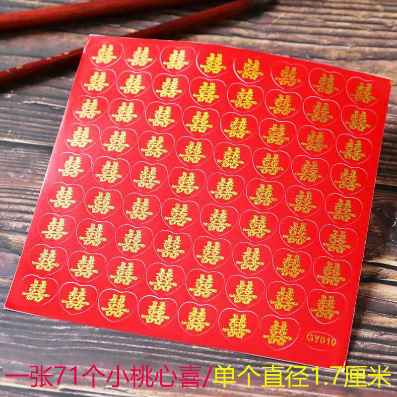 小囍字帖不干胶 满月红鸡蛋硬币喜字贴结婚专用不干胶贴纸迷你的 小桃心喜 5张 不干胶 迷你喜