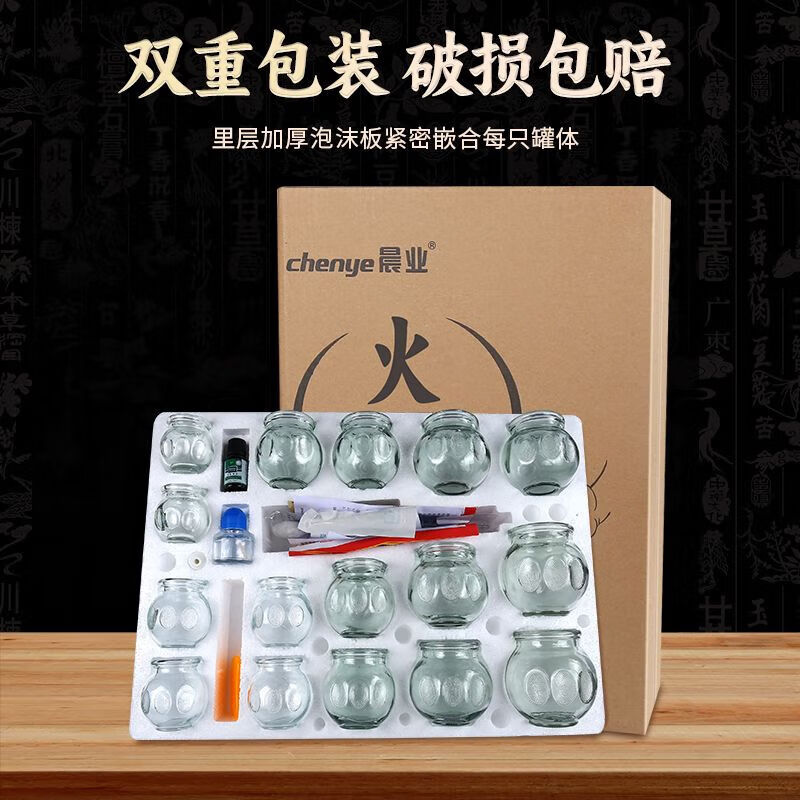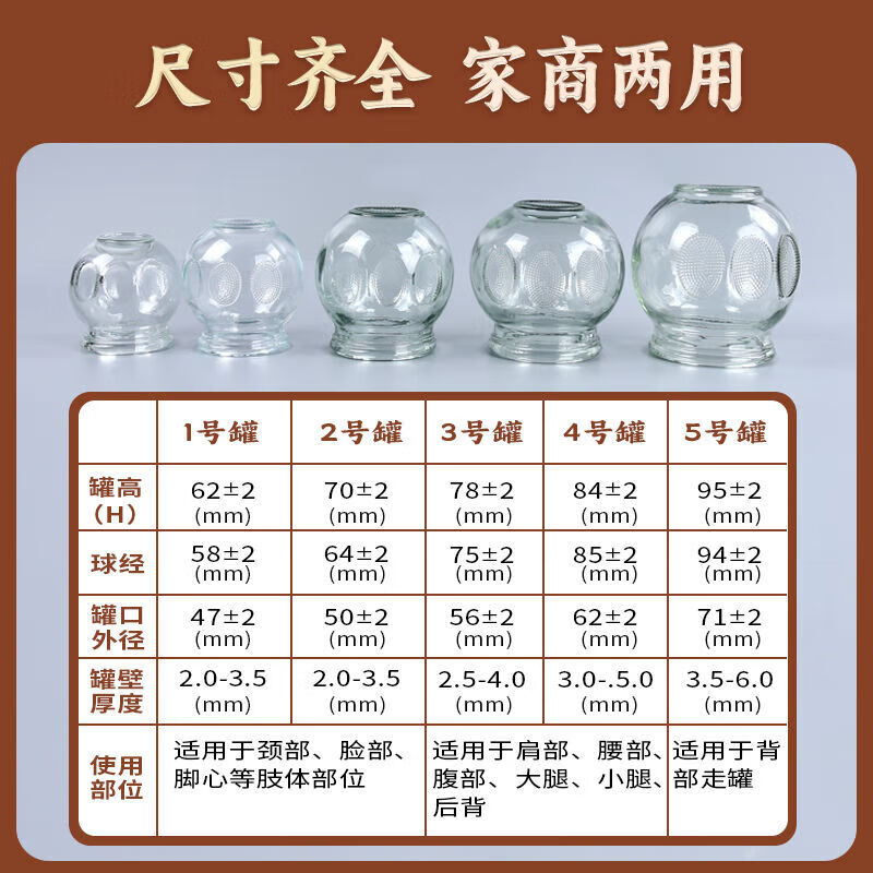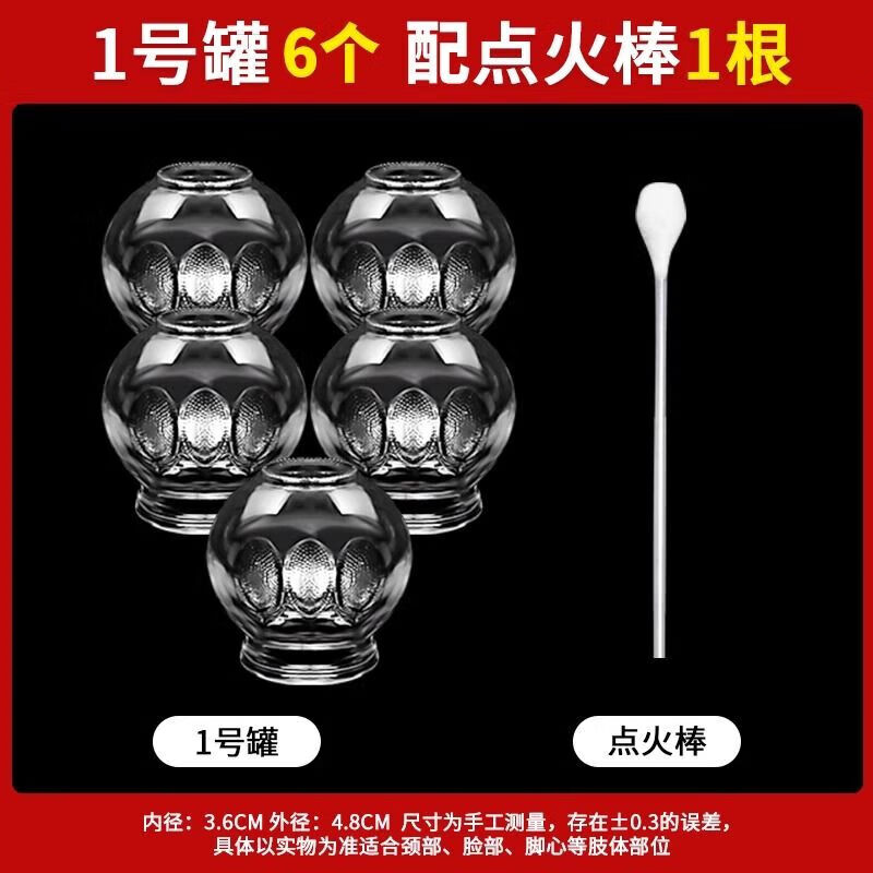 晨业医用火罐玻璃罐拔火罐家用1-5号加厚拔火罐子美容院拔罐器具 1号罐[外径约47mm]适用颈-脸-脚 [6]个+点火棒