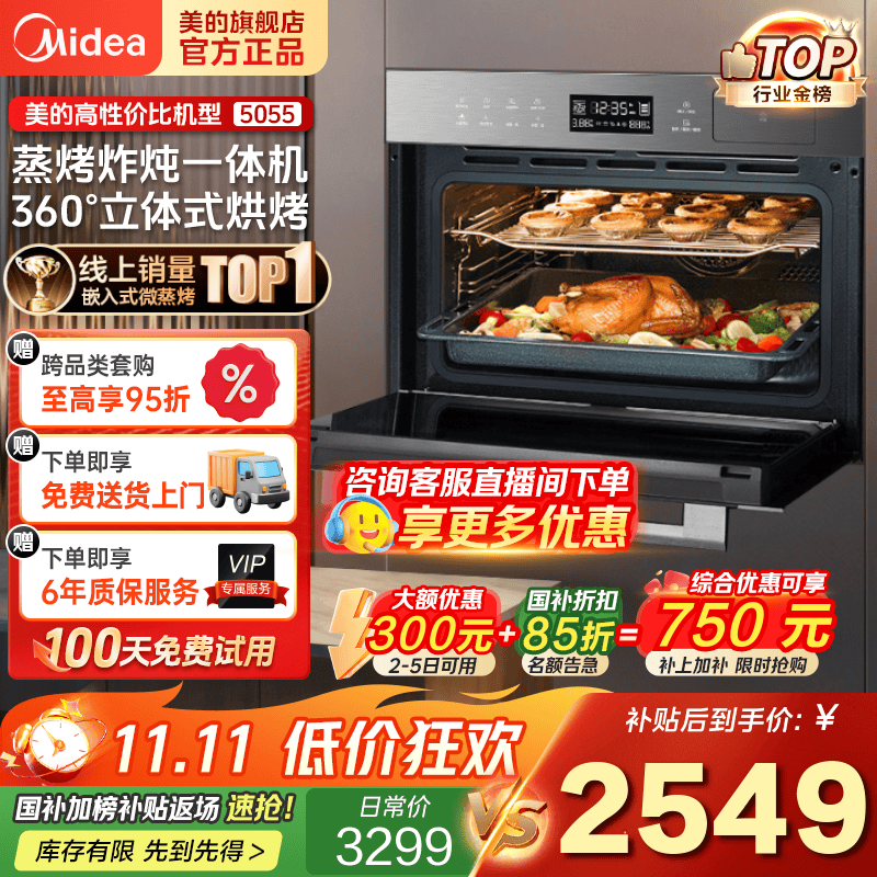 美的嵌入式厨房旗舰店手机扫码,领券购买