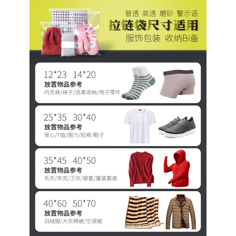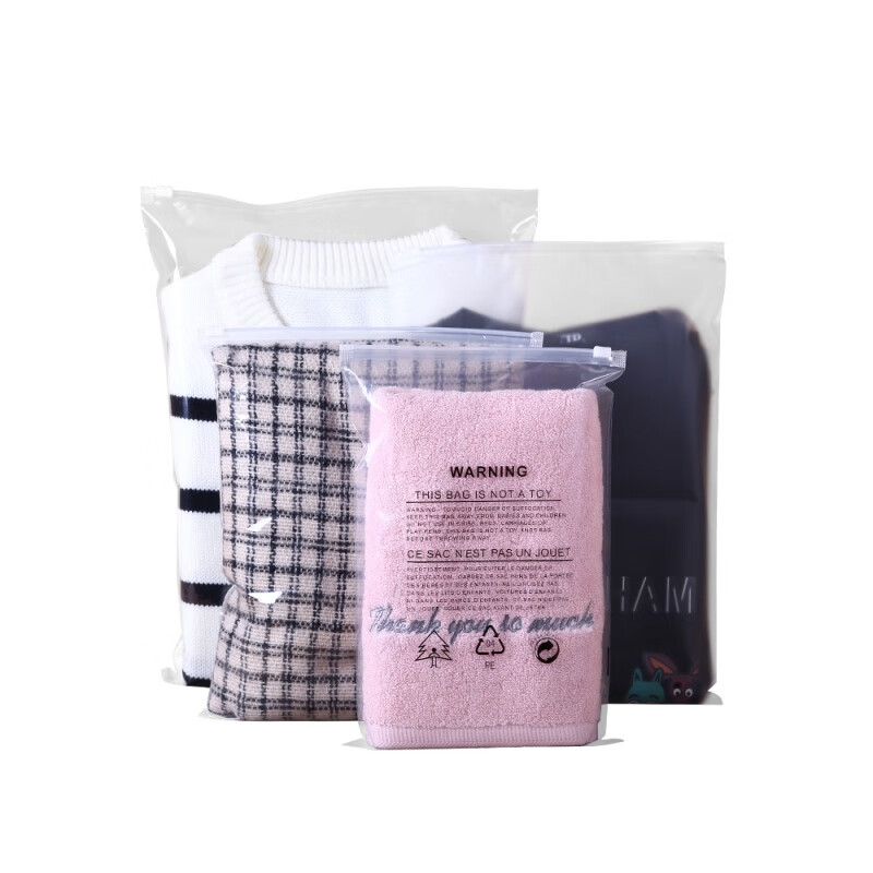 服装拉链袋塑料自封袋子装衣服包装袋磨砂收纳袋塑封袋封口袋的 30*40cm 装卫衣 牛仔裤等 12丝透明款10只试用装