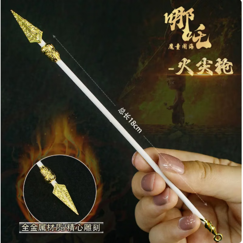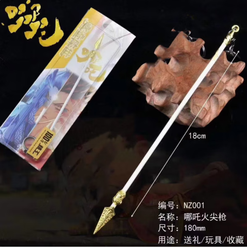 哪吒2周边武器模型 哪吒火尖枪敖丙双锤玩具金属学生书包挂件的 18cm哪吒火尖枪银色 现货