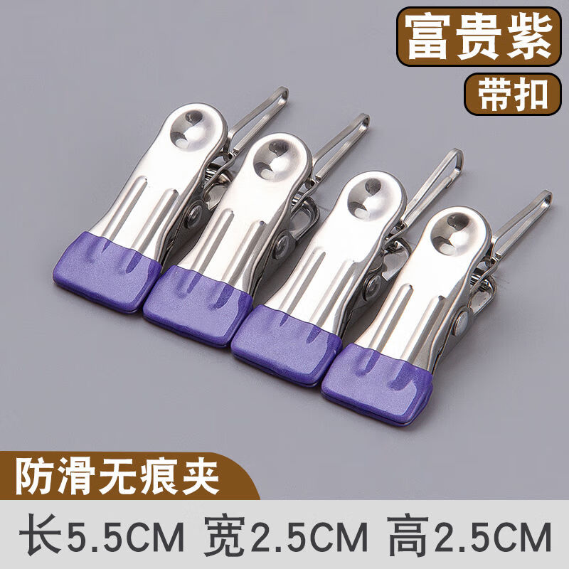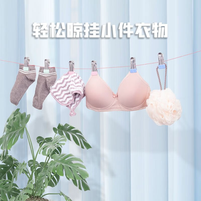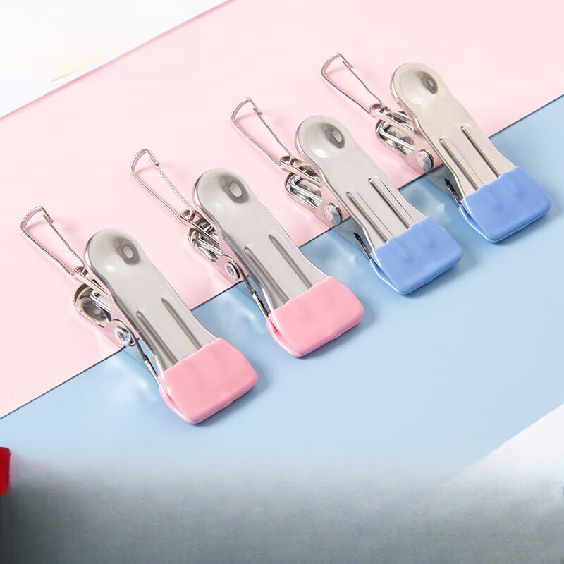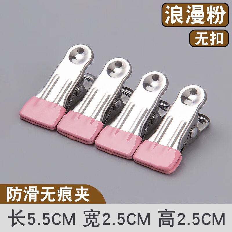 无痕晾晒夹子不锈钢防风晾衣服晒固定衣夹家用单个衣架小夹子晾的 粉色无扣 6个装