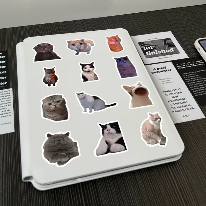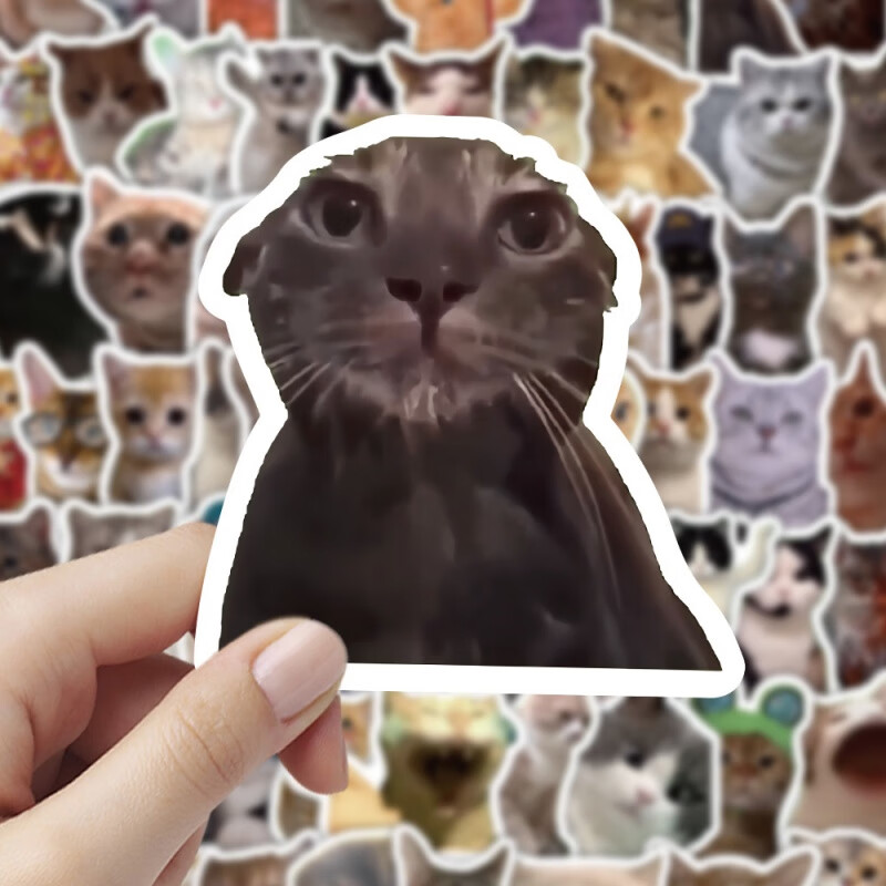 猫meme卡通周边贴 纸可爱搞笑鬼畜猫咪表情包梗图手账本贴贴的 100张贴纸高清印刷