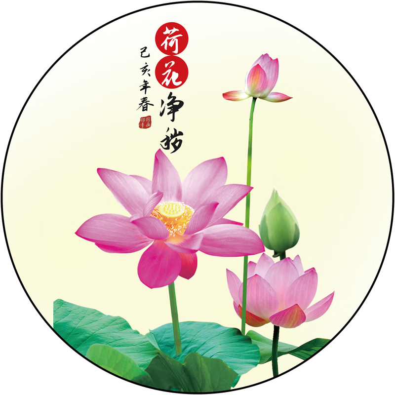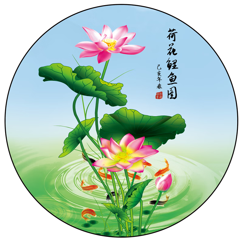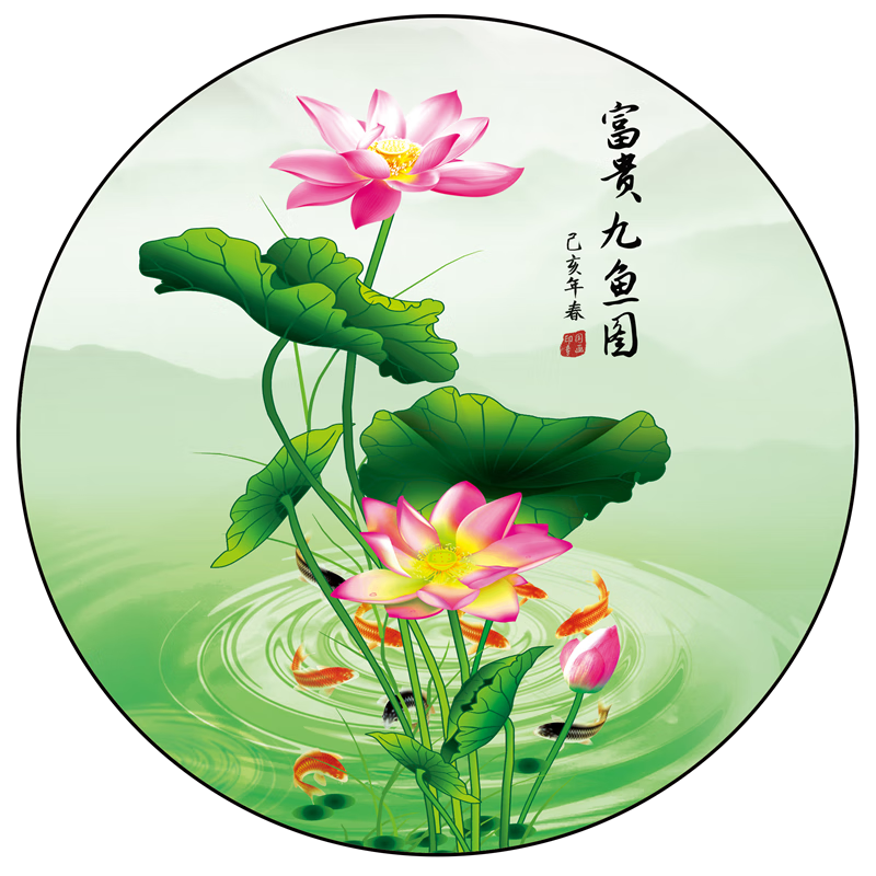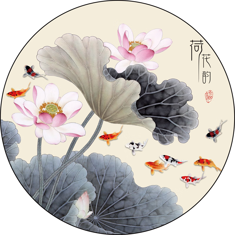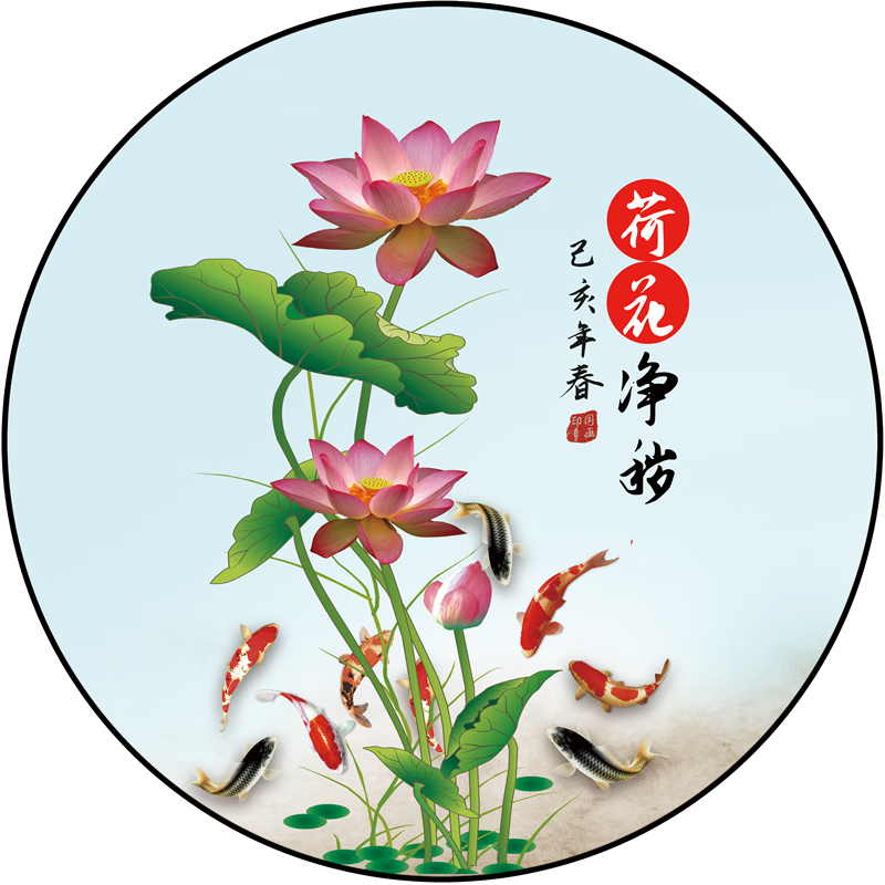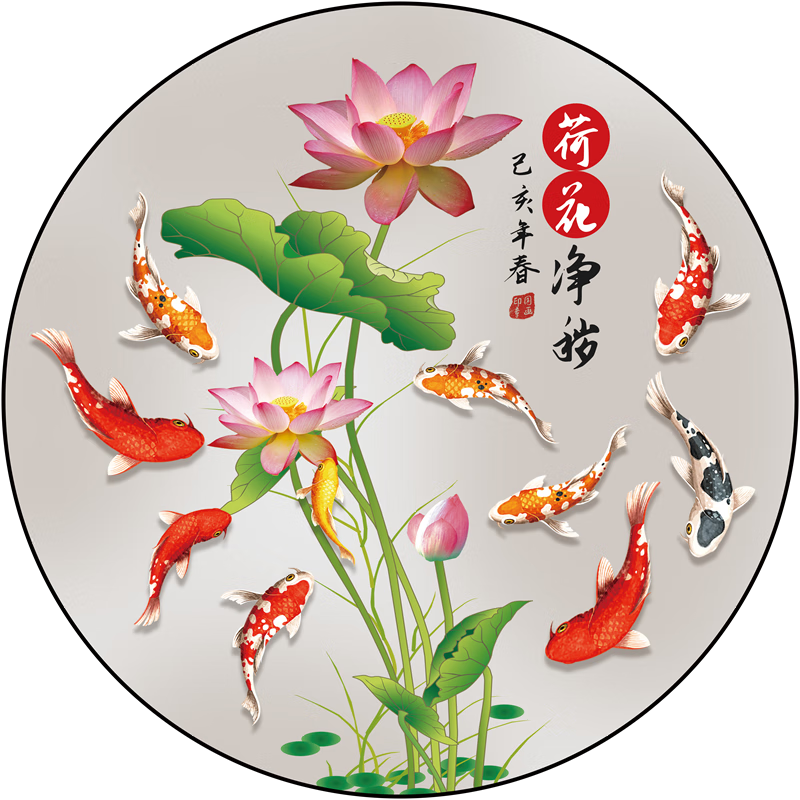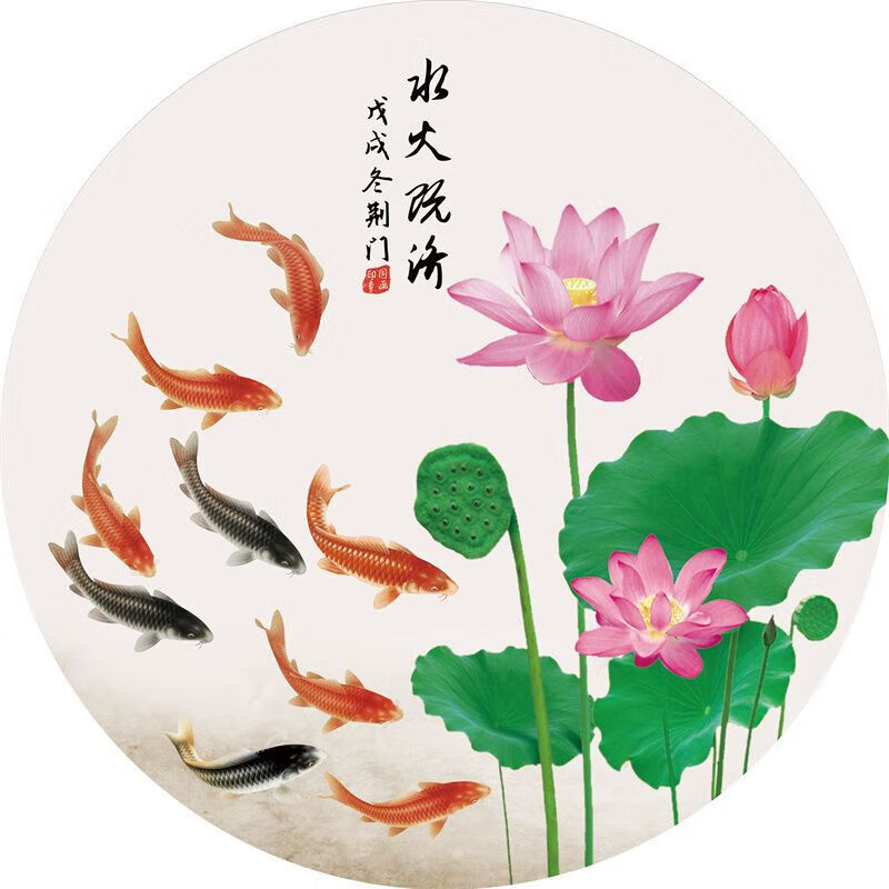 友家语荷花鲤鱼图厨房用新中式荷花鲤鱼图厨房卫生间防水贴纸莲花图案的 荷花净秽01贴画 背胶贴画圆形20厘米太小