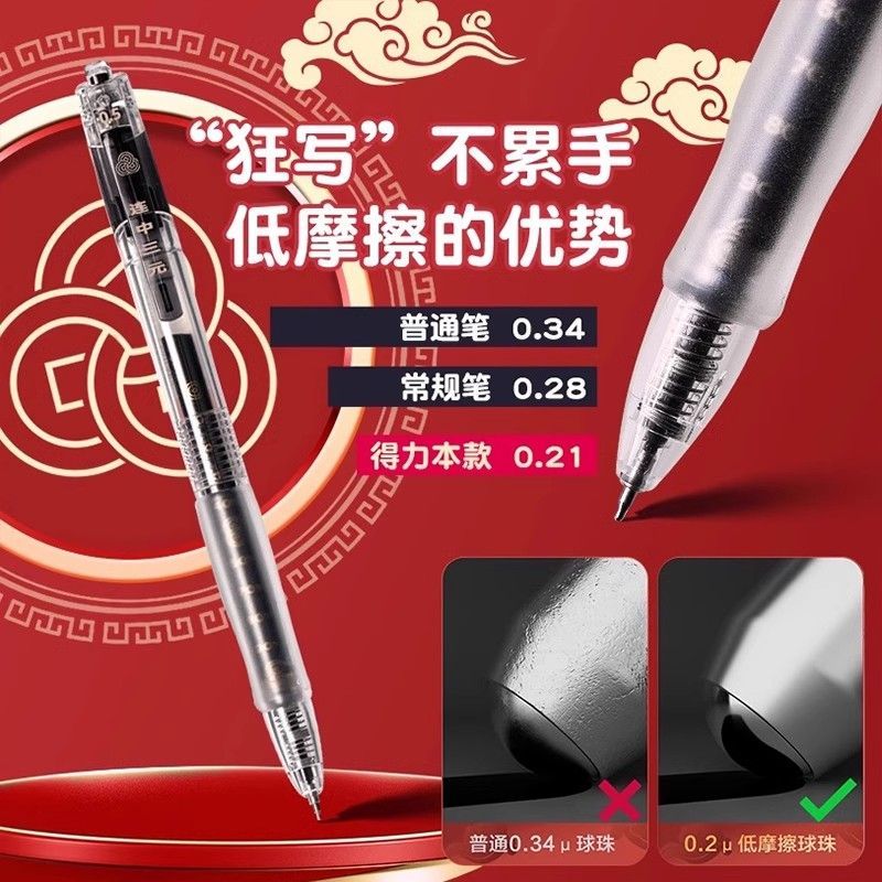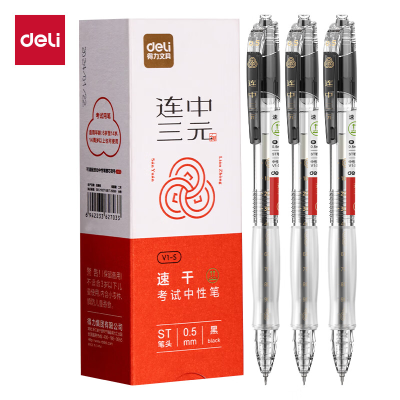 得力(deli)经典办公拔帽中性笔 0.5mm子弹头水笔签字笔 12支/盒黑色34567