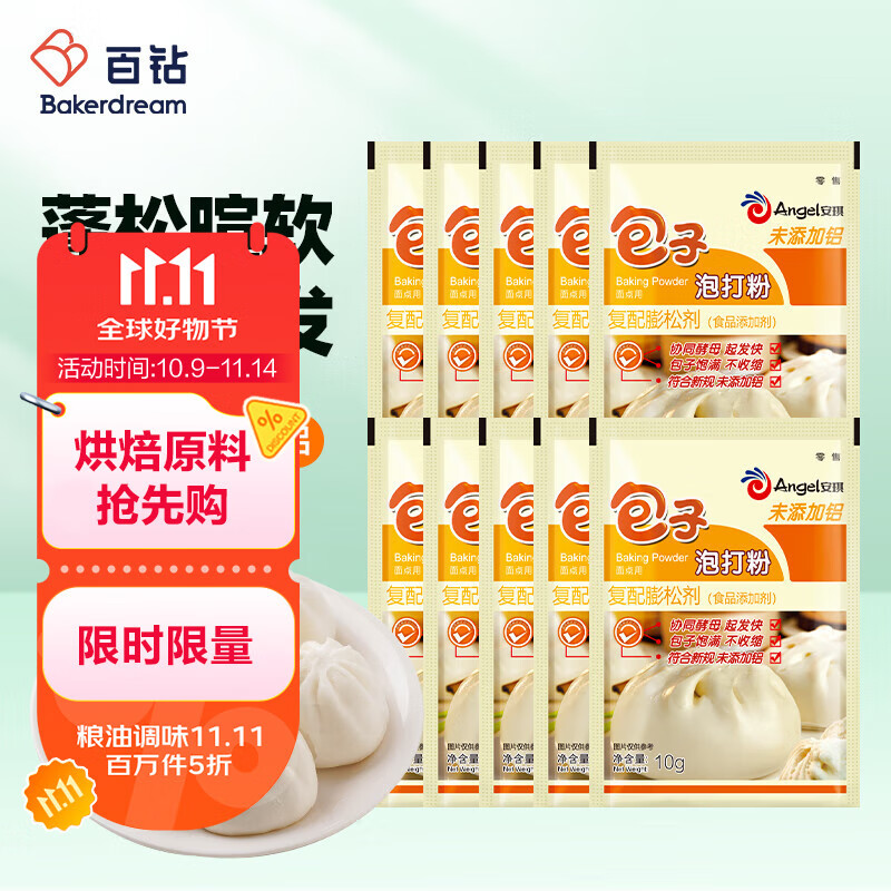 安琪无铝害包子泡打粉10g*10袋家用小包装馒头中式面点发面复配膨松剂