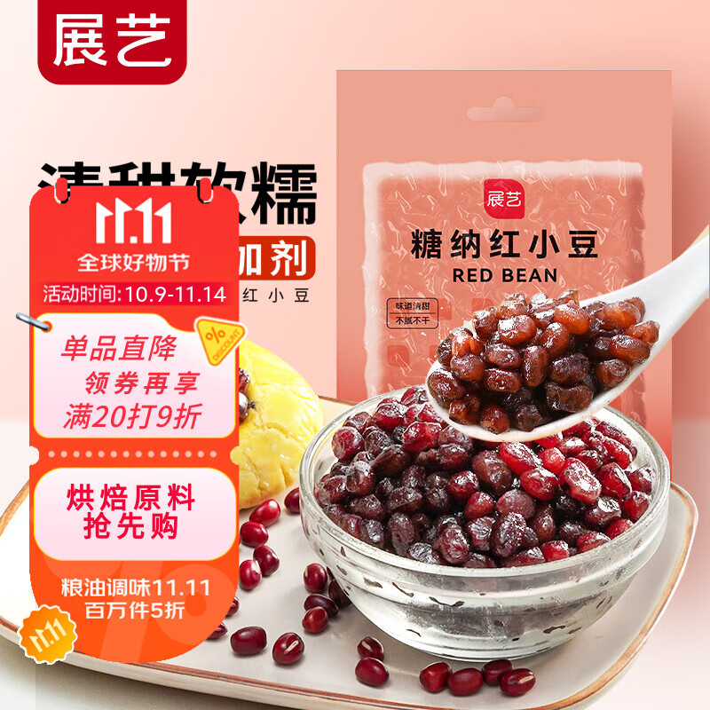 展艺糖纳红小豆 奶茶小料清补凉即食蜜豆月饼馅料烘焙原料 500g