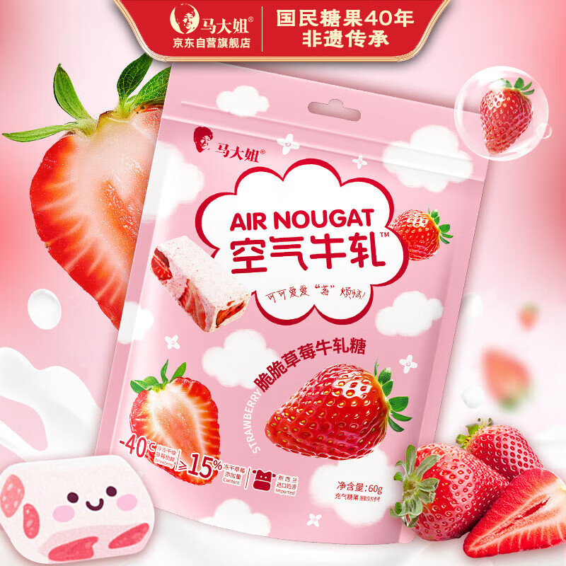 马大姐 牛轧糖 60g约14颗 草莓空气软牛轧儿童酸甜水果糖果 雪花酥 零食