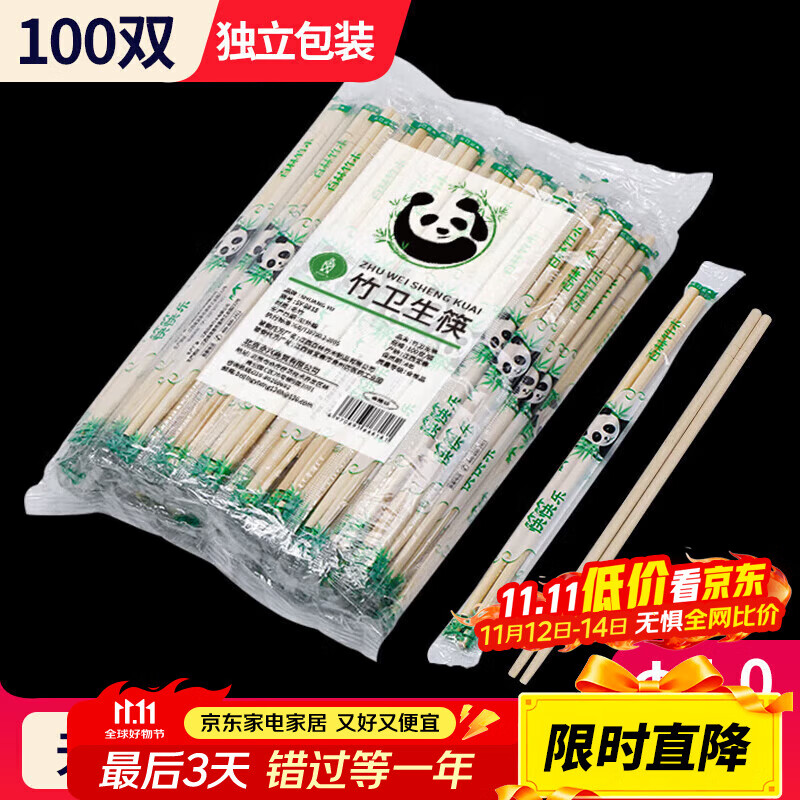 SHUANG YU一次性筷子100双独立包装家用野餐卫生竹筷 打包方便筷餐具用品