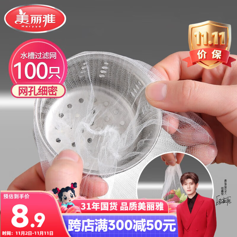 美丽雅水槽过滤网100只一次性 厨房下水道水池地漏筛网