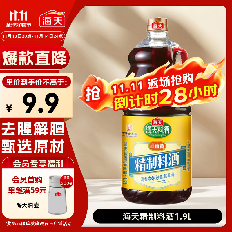 海天 料酒 1.9L 0添加防腐剂 调味品 酒香浓郁 去腥解膻 家用