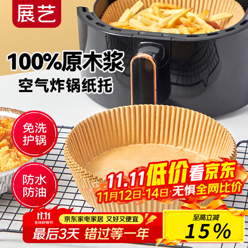 展艺圆形空气炸锅专用纸托53只装16cm 加厚加高食品级原木纸浆烘焙纸
