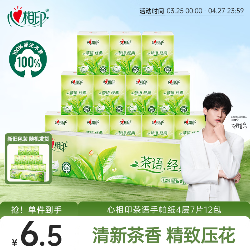 心相印手帕纸茶语经典 淡茶香4层7片*12包 便携纸巾 新旧发