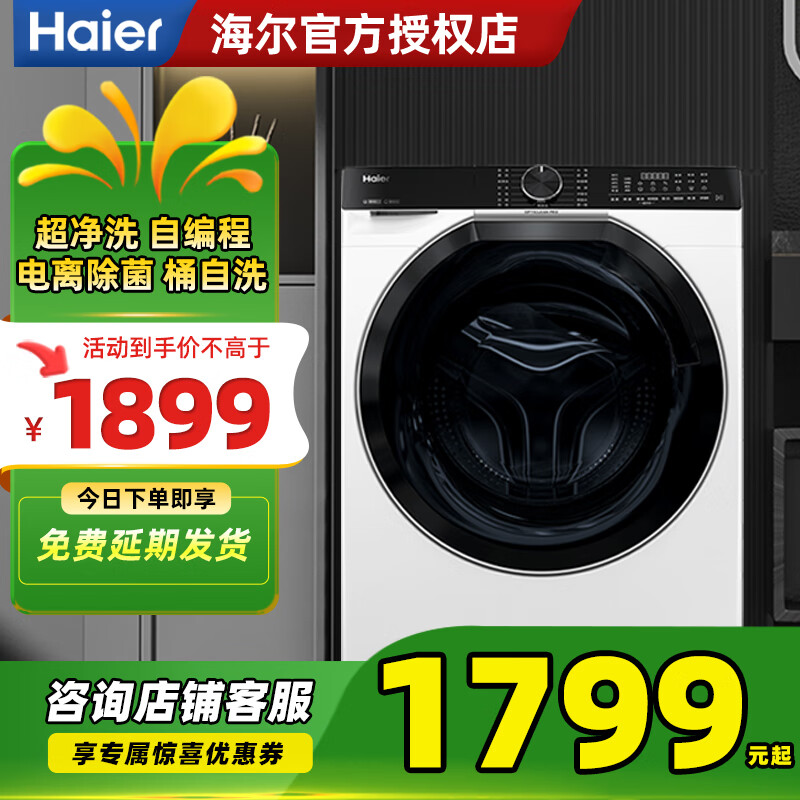 海尔(Haier)10KG滚筒洗衣机精华洗2.0AI动平衡智能投放巴氏除菌螨超薄嵌入1.1超高洗净比EG100BD69LW 【特渍洗】超薄嵌入|巴氏除菌
