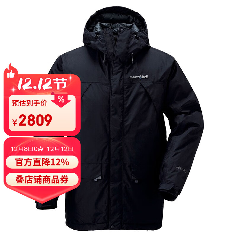mont·bell探险系列羽绒服男女800高蓬鹅绒GTX科技面料防风保暖外套 1101443 黑色BK XL