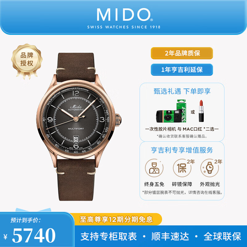 美度(MIDO)【官方正品】舵手系列传承者脉搏计复古风格男表自动机械手表 镀金款/M040.407.36.060.00