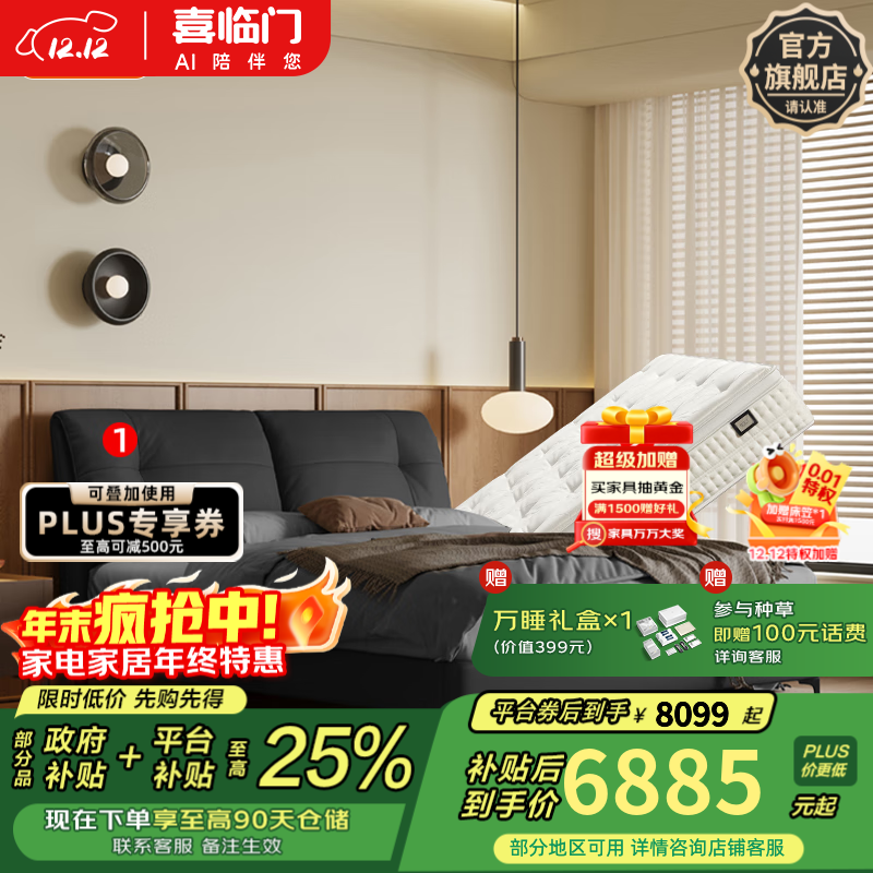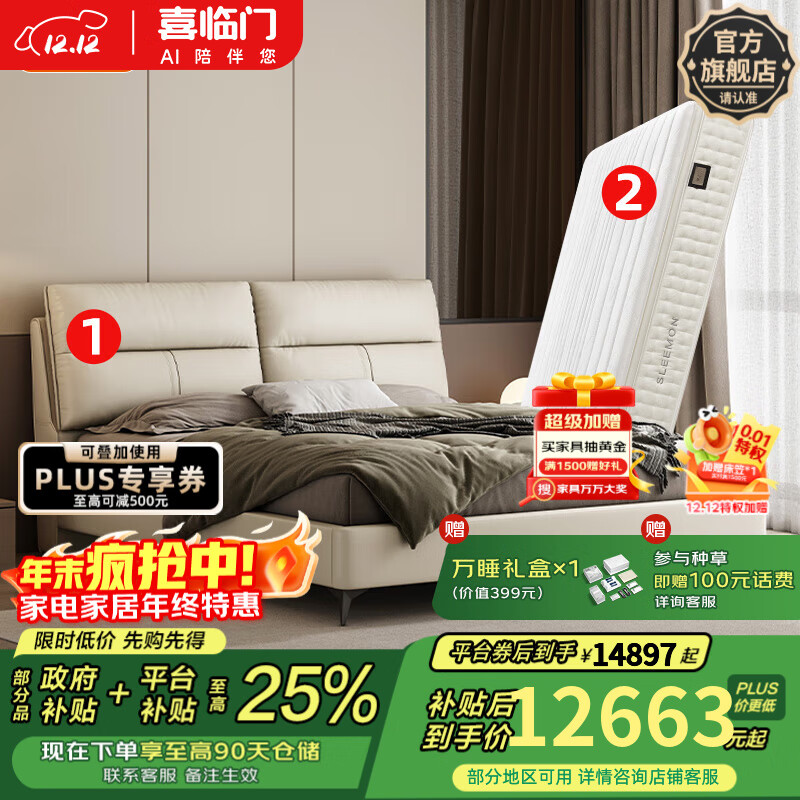 喜临门净眠智能电动床垫空气弹簧软硬护脊家用释压床垫席梦思 M60智能+智慧TI床架+伯尔尼S床架(月牙米) 1.8*2米