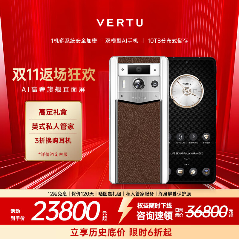 VERTU【咨询享大额补贴】威图纬图官方奢品手机META全面屏AI智能体手机新机上市5g高端加密商务手机 白陶银色焦糖棕【免费升1TB】 12GB+1TB