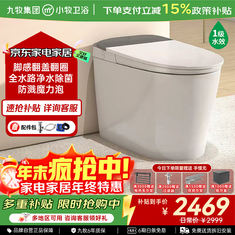九牧(JOMOO)小牧卫浴智能马桶静音冲UV水路杀菌感应翻盖座圈加热魔力泡XD5 XD5-7160 UVC除菌+脚感翻盖+魔力泡 305/300mm 【290-390以内选择】