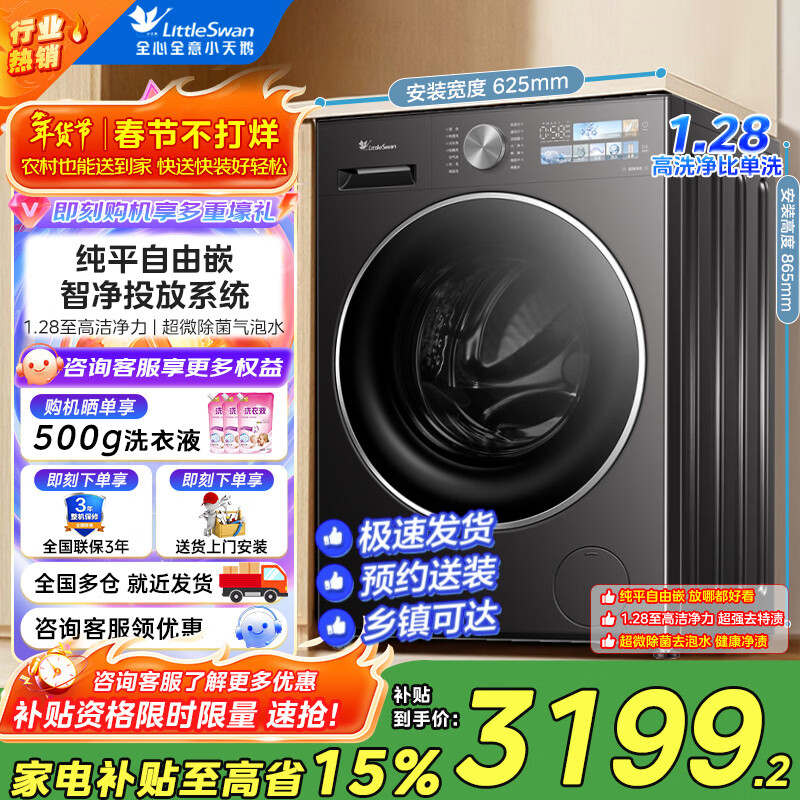 小天鹅(LittleSwan)小乌梅3.0SE洗衣机滚筒全自动10KG大容量纯平全嵌微除菌气泡水一级能效 1.28高洗净比 滚筒 10kg TG10VE40SE