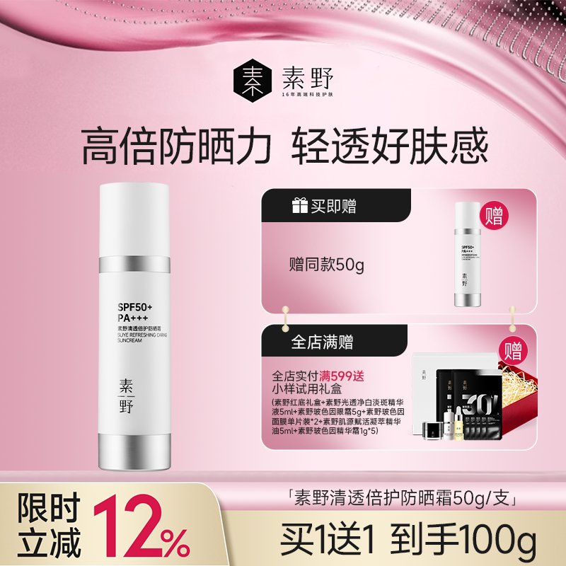【买1送1】素野清透倍护夏季面部户外通勤旅行防晒霜SPF50+