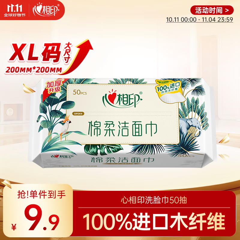 心相印洗脸巾50抽 干湿两用棉柔洁面巾加厚一次性抽取式
