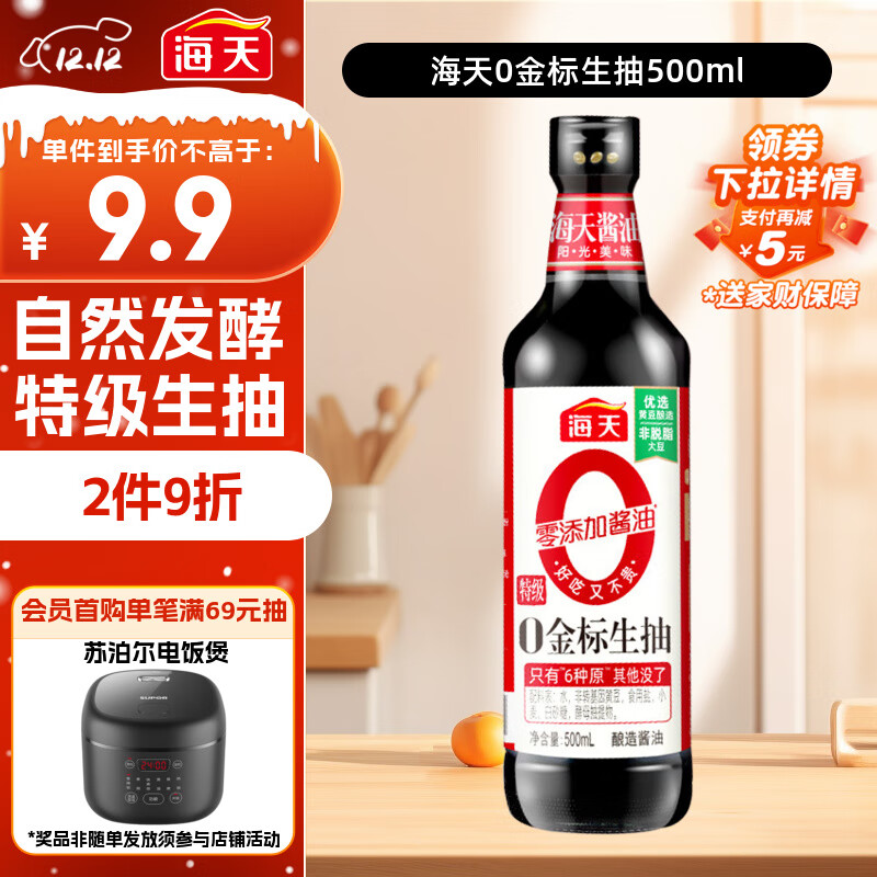 海天 生抽酱油500ml【0金标特级酱油】金标系列 0添加防腐剂
