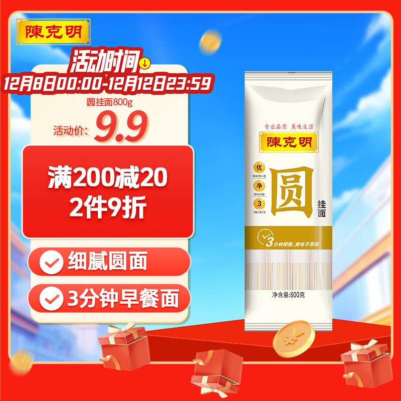 陈克明面条 圆挂面细面圆面汤面劲道速食面800g 营养早餐面