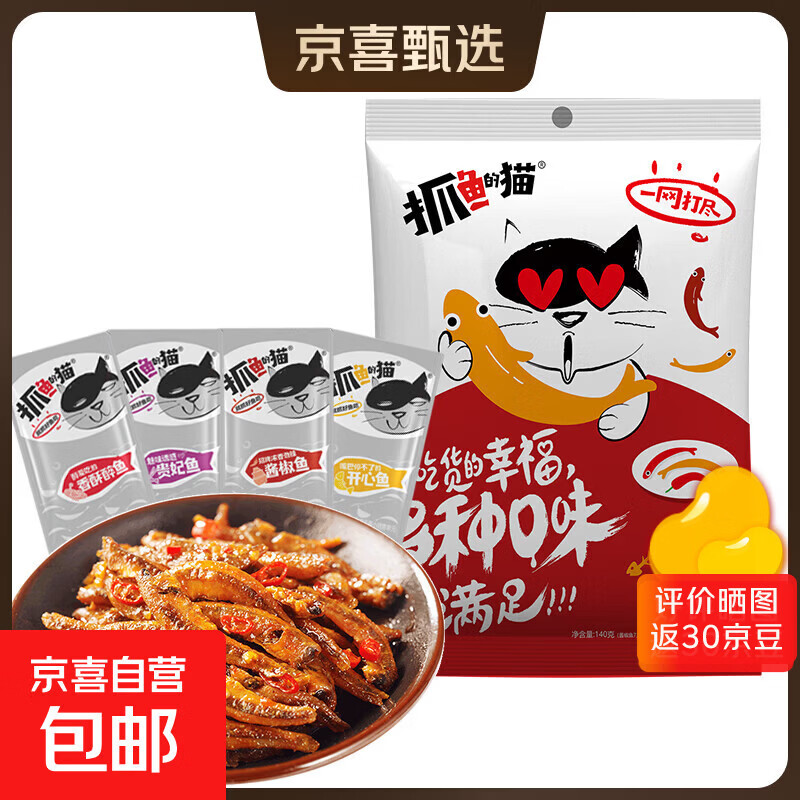 抓鱼的猫 香辣鱼仔鱼干休闲零食特产开袋即食 7g/袋 混合口味活动 20包