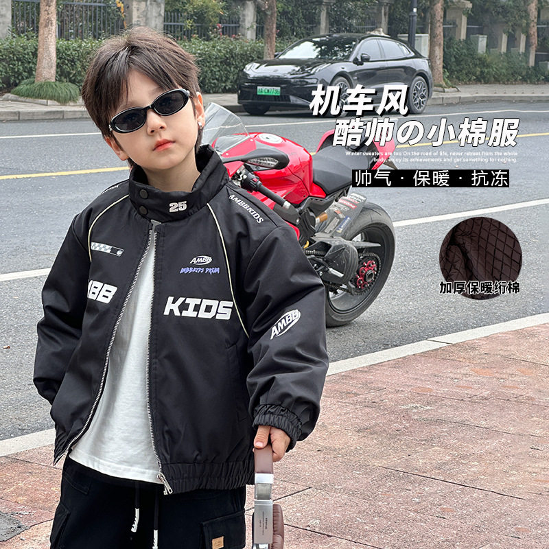 小杰家2025冬季新品儿童过年服男童帅气字母夹棉机车服棉服