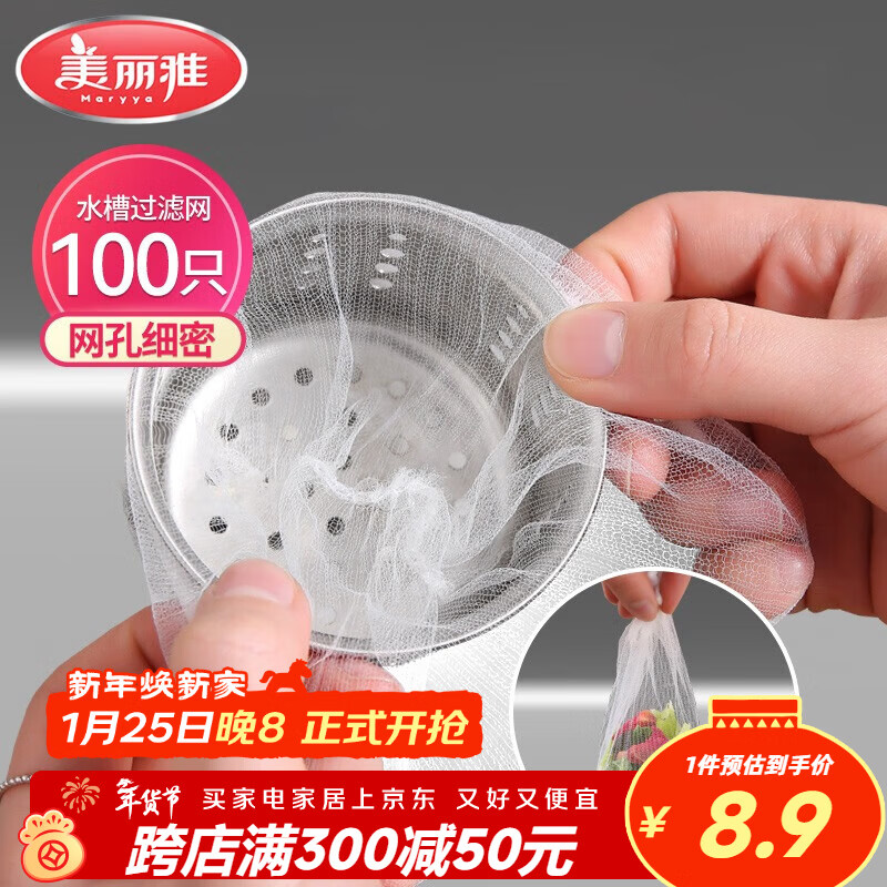 美丽雅水槽过滤网100只一次性 厨房下水道水池地漏筛网