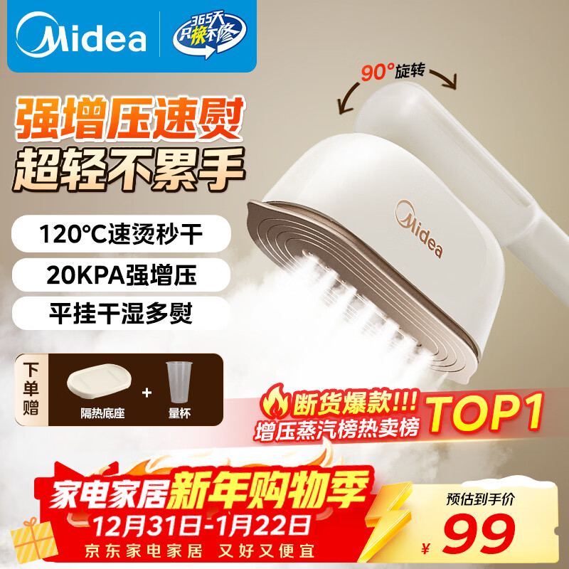 美的(Midea)【增压TOP1】手持挂烫机家用熨烫机/小型便携大功率电熨斗机/烫衣服蒸汽熨斗机/年货节礼物YBJ12JD