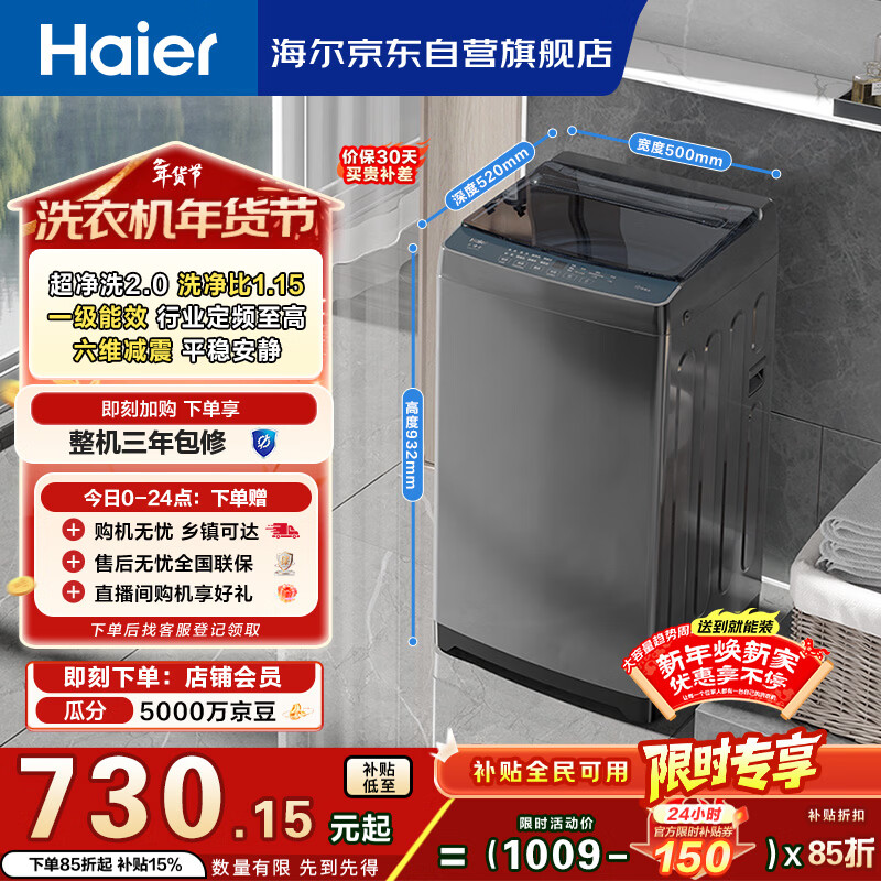 海尔(Haier)全自动波轮洗衣机8KG小型 家用宿舍出租房 家电国家补贴以旧换新京东自营XQB80-Z10D0