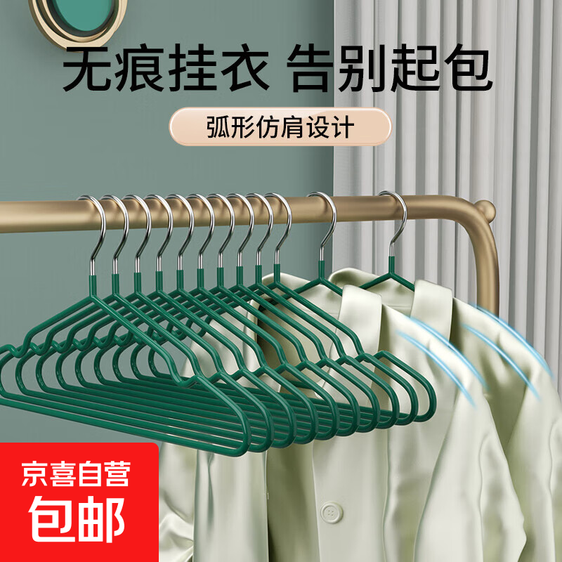 开学季衣架挂衣服防滑无痕衣挂架成人家用加粗加宽大号晾晒衣撑子 墨绿 5个